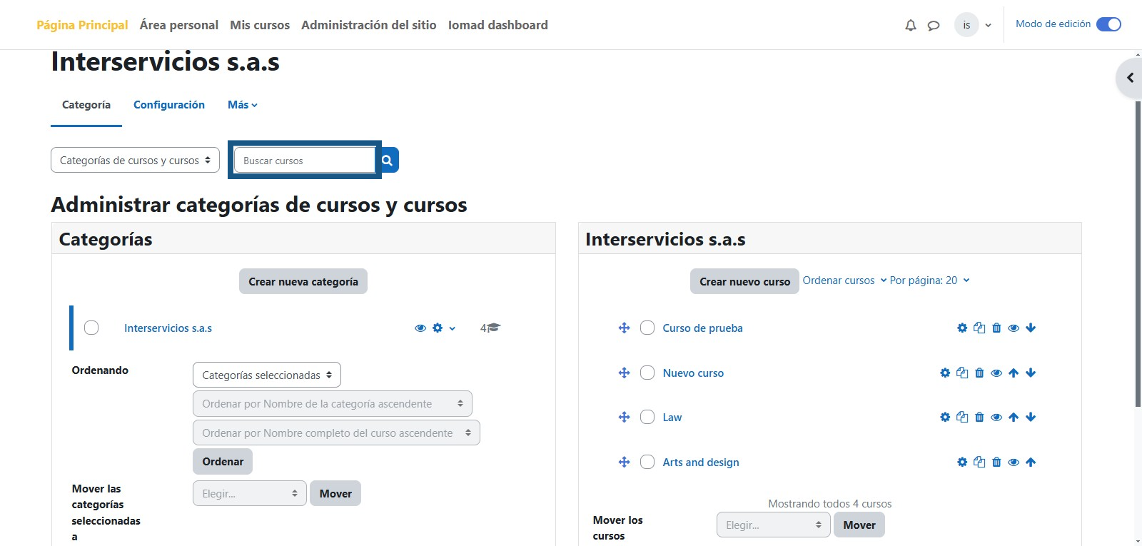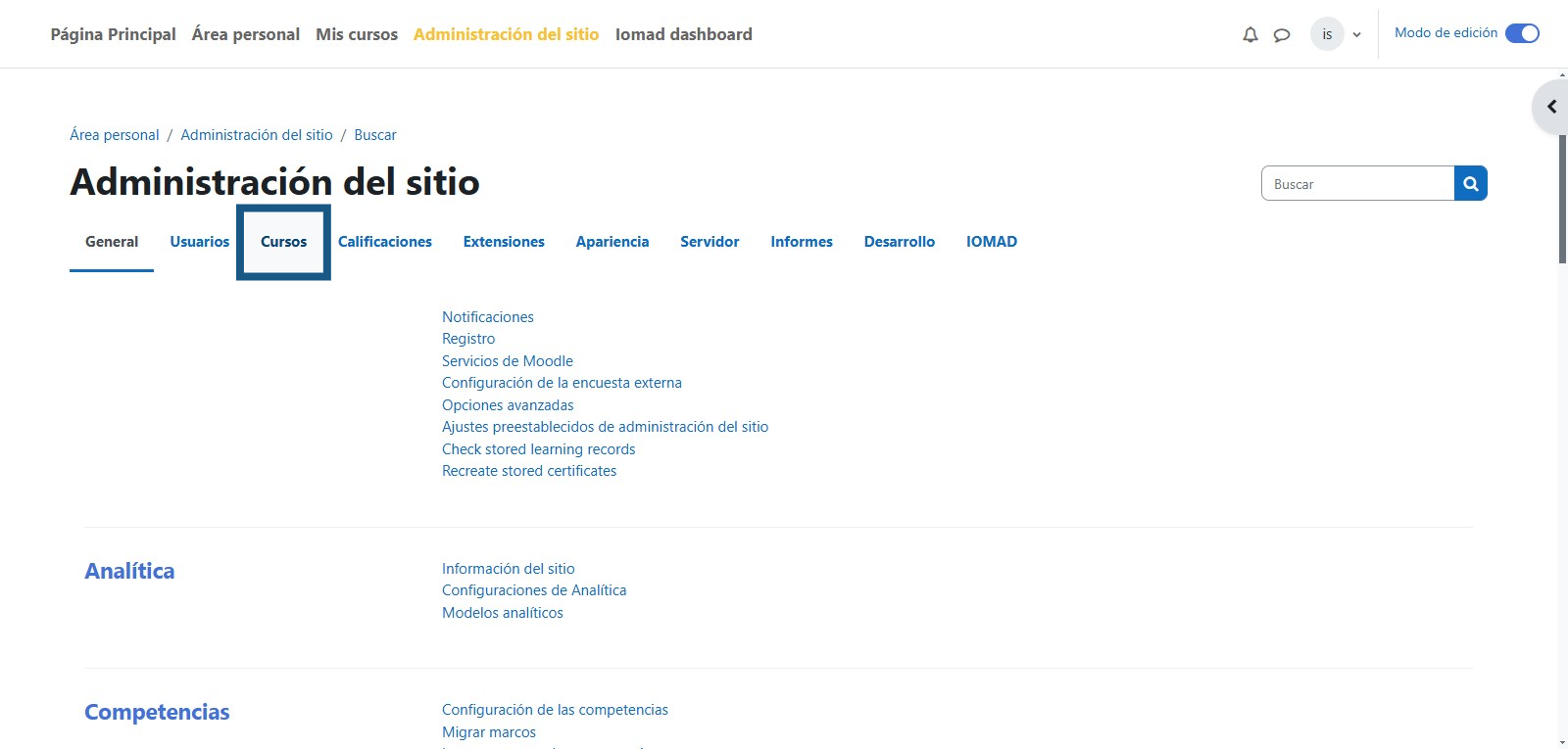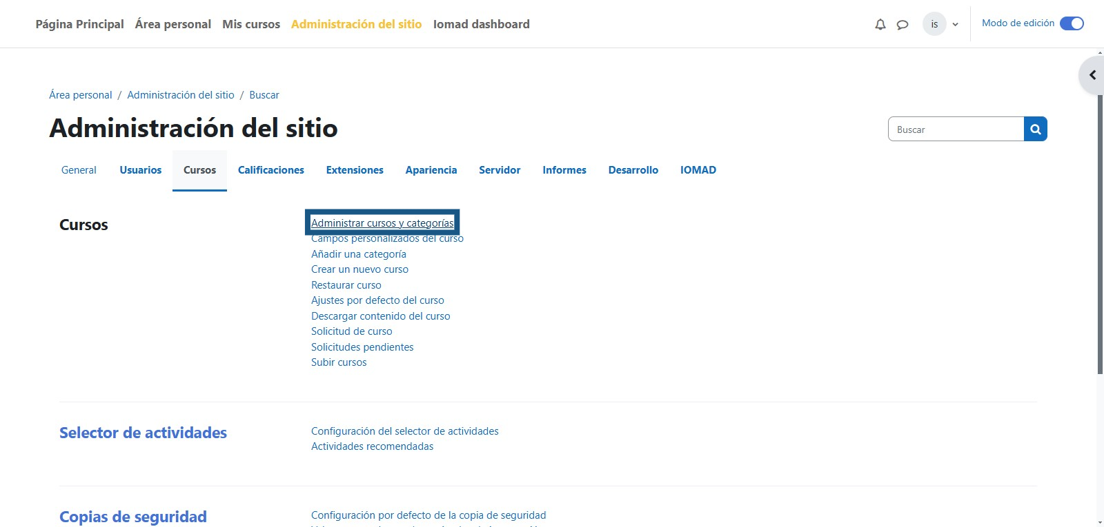 Paso 3: Ingresar a Administrar cursos y categorías