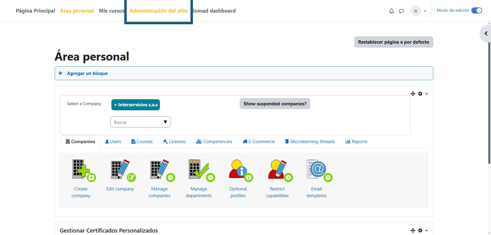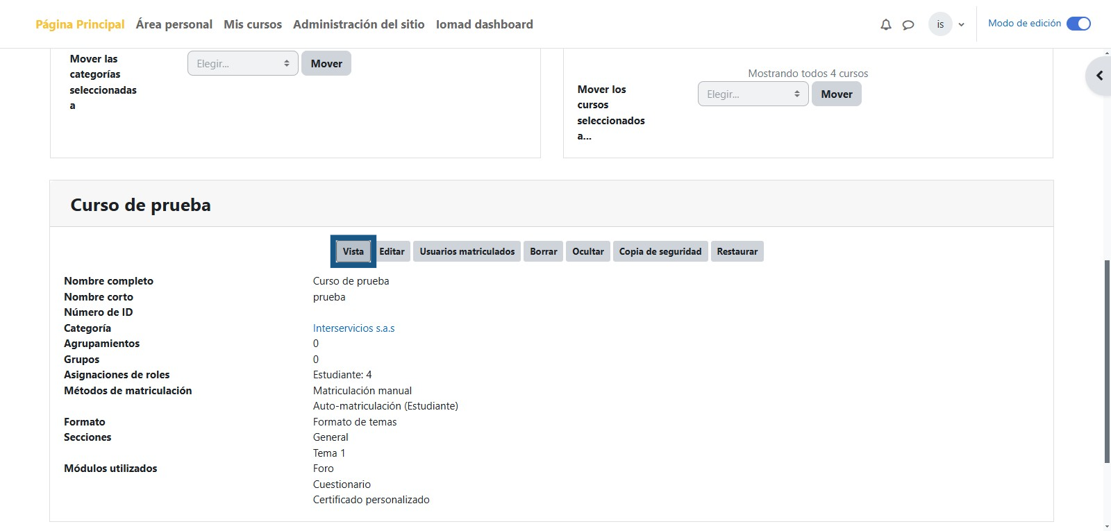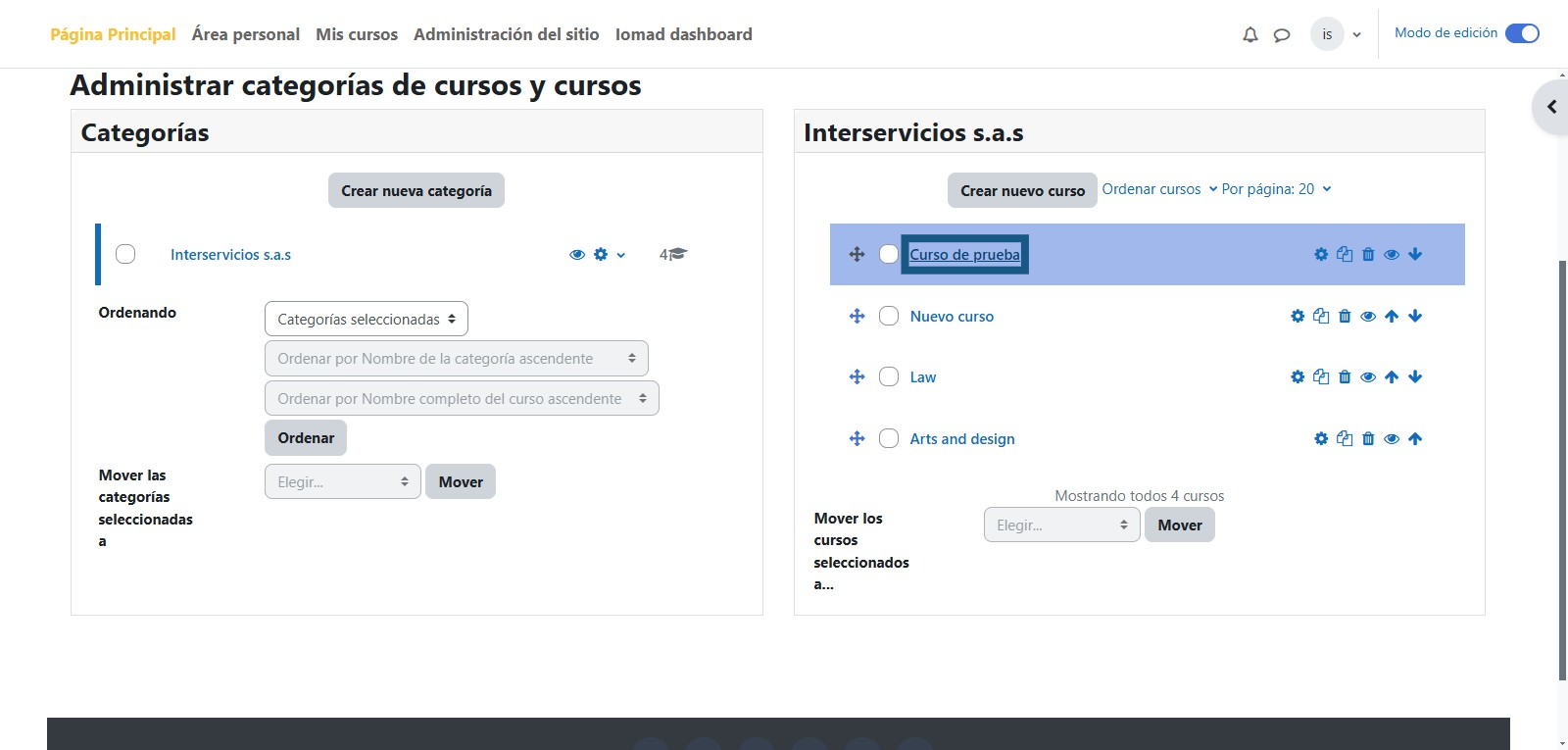 Paso 3: Ingresar a Administrar cursos y categorías