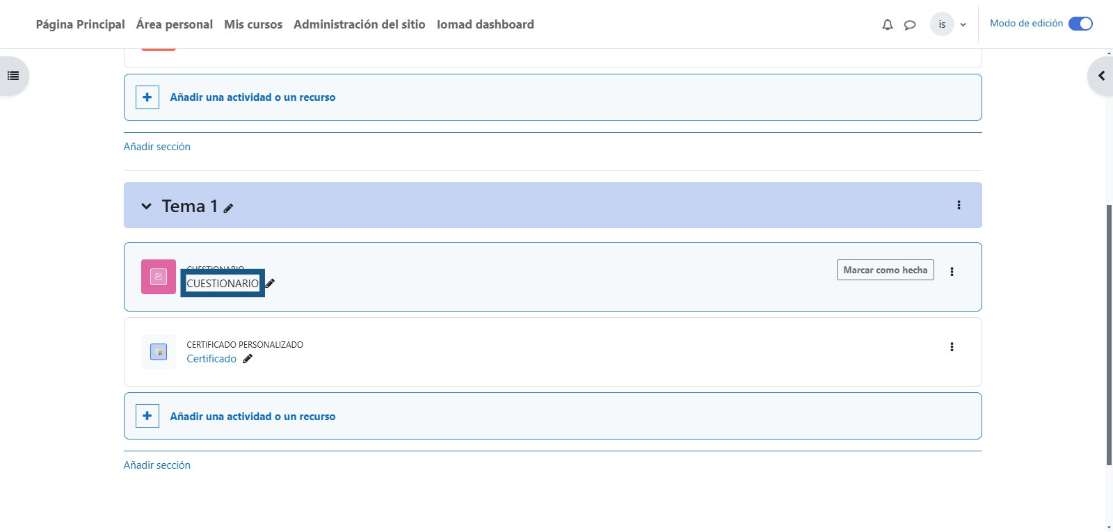 Paso 7: ingresar al recurso "Cuestionario"