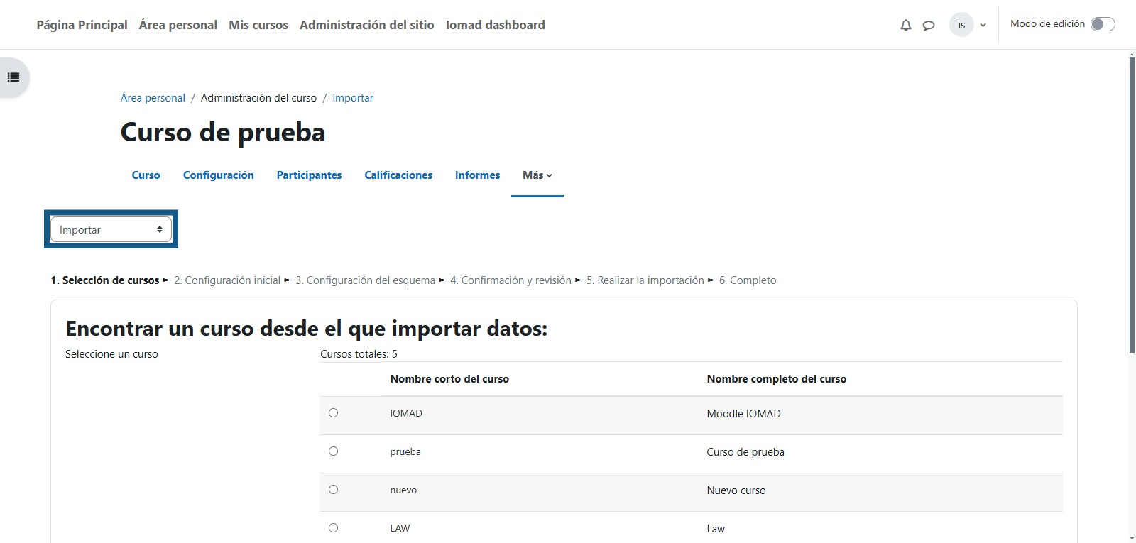 En esta sección se debe de seleccionar el curso que al principio de este instructivo se menciona que se debe de crear.